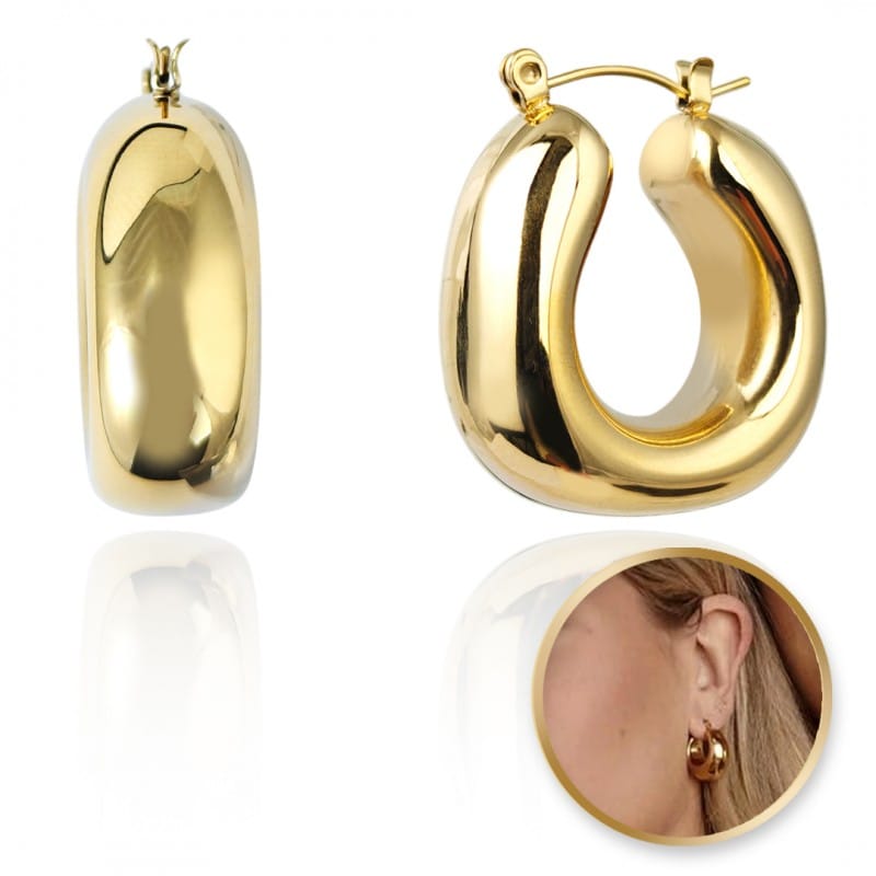 Kolczyki ze stali szlachetnej platerowane 14-karatowym złotemEleganckie i stylowe kolczyki. Wymiar kolczyków: 2,6cm x 2,6cm x 1,1cm Wymiar kartonika z opakowaniem:8,5cm x 7cm Waga:18g netto / 22g brutto Kolor: jasne złotoRodzaj zapięcia: kreol STAL CHIRURGICZNA jest odporna na warunki atmosferyczne, nie ulega korozji, nie rdzewieje, nie śniedzieje.