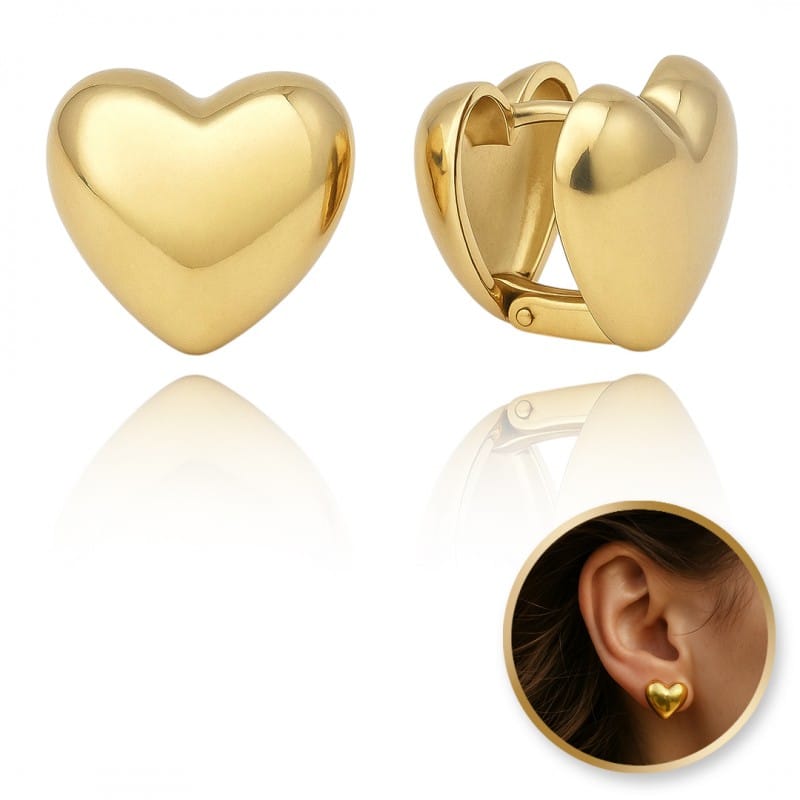 Kolczyki ze stali szlachetnej platerowane 14k złotem, dwustronne serca KST3412