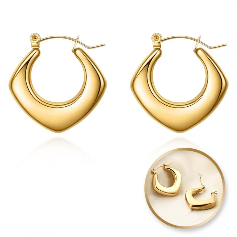 Kolczyki damskie platerowane złotemEleganckie i stylowe kolczyki. Wymiary kolczyków:2,2cm x 2cm x 0,4cmWymiary kartonika:6 cm x 5,5 cm Waga: 4g netto / 7g brutto Kolor: jasne złotoRodzaj zapięcia: kreolProducent: inny STAL CHIRURGICZNA jest odporna na warunki atmosferyczne, nie ulega korozji, nie rdzewieje, nie śniedziej