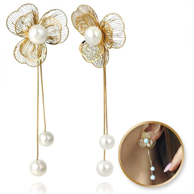 Kolczyki ze stali szlachetnej platerowane 14k złotem KWIATY perełki KST3361