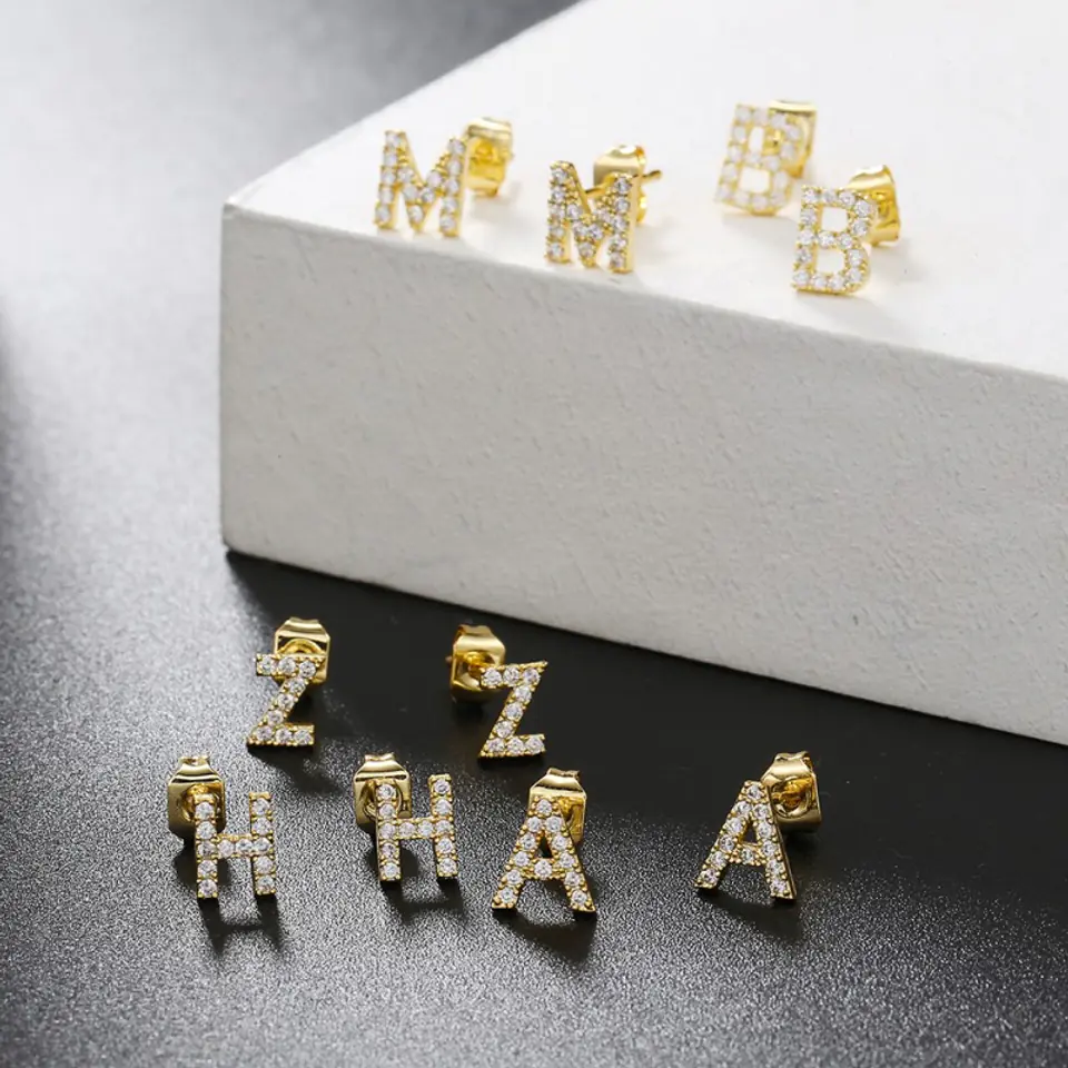 Kolczyki ze stali szlachetnej platerowane 14k złotem, literka M 2szt. KST3203M