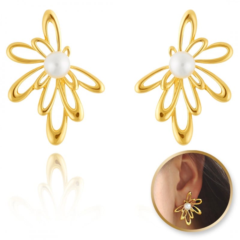 Kolczyki ze stali szlachetnej platerowane 14k złotem, perła KST3402