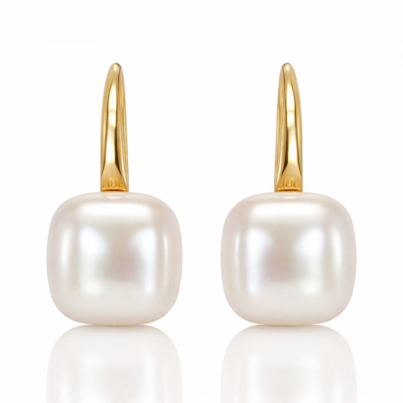 Kolczyki ze stali szlachetnej platerowane 14k złotem, perłowe kwadraty KST3544