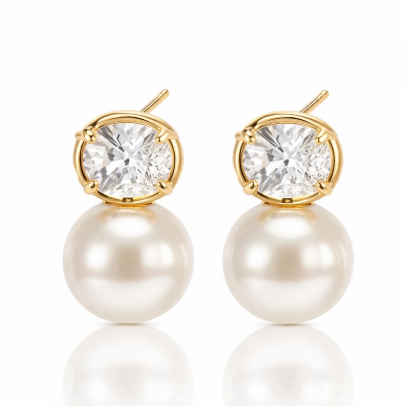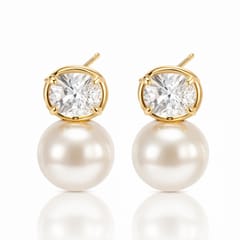 Kolczyki ze stali szlachetnej platerowane 14k złotem, perły z cyrkonią KST3542