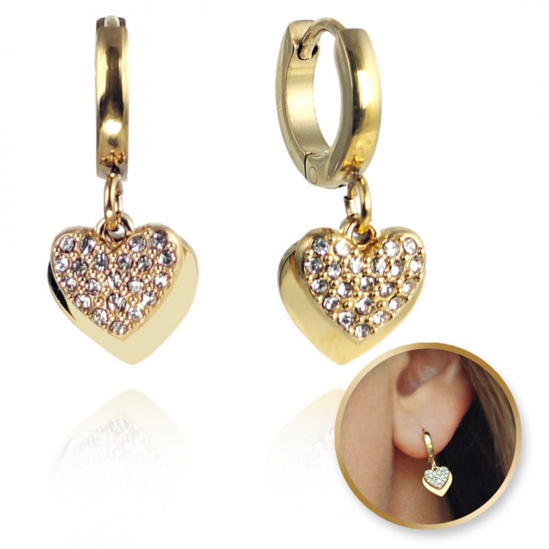Kolczyki ze stali szlachetnej platerowane 14k złotem SERCA KST3345