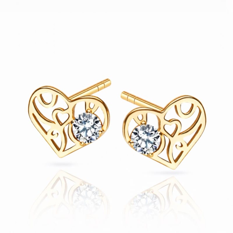 Kolczyki ze stali szlachetnej platerowane 14k złotem, sztyft, ażurowe serce z cyrkonią KST3538