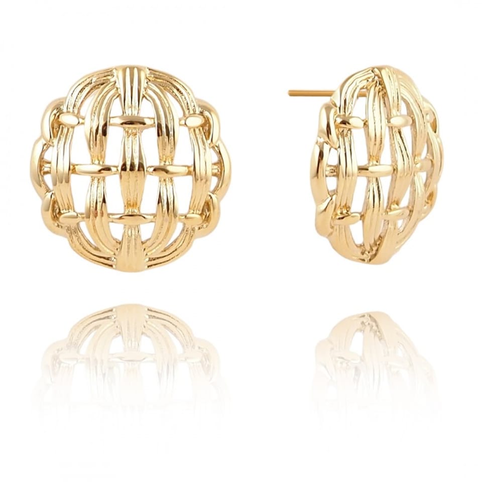 Kolczyki ze stali szlachetnej platerowane 14-karatowym złotem, sztyft Eleganckie i stylowe kolczyki. WYMIARY:Wymiar kolczyków: 2,6 cm x 2,5 cm Wymiar kartonika:5,5 cm x 6 cm Waga :9g netto / 11 g brutto Kolor: jasne złotoRodzaj zapięcia: sztyft STAL CHIRURGICZNA jest odporna na warunki atmosferyczne, nie ulega korozji, nie rdzewieje, nie śniedzieje.
