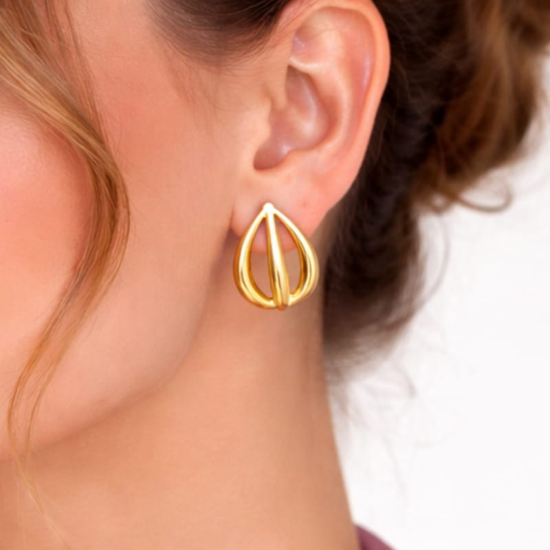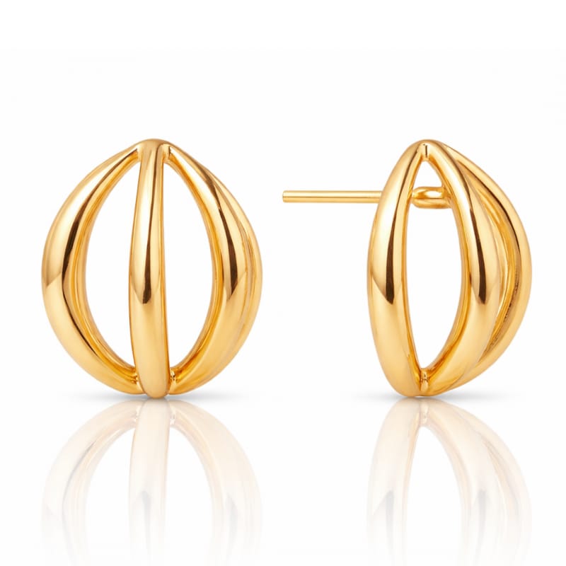 Kolczyki ze stali szlachetnej platerowane 14-karatowym złotem, sztyft Eleganckie i stylowe kolczyki. WYMIARY:Wymiar kolczyków: 2,1 cm x 2 cm Wymiar kartonika:5,5 cm x 6 cm Waga:12g netto / 14g brutto Kolor: jasne złotoRodzaj zapięcia: sztyft STAL CHIRURGICZNA jest odporna na warunki atmosferyczne, nie ulega korozji, nie rdzewieje, nie śniedzieje.
