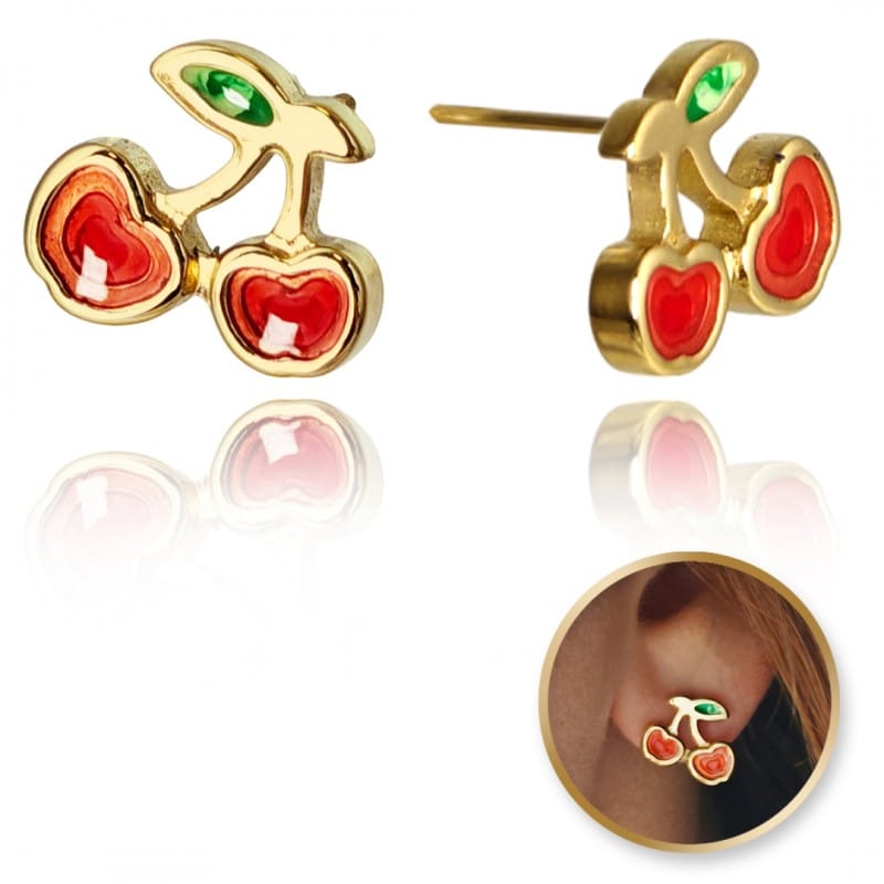 Kolczyki ze stali szlachetnej platerowane 14k złotem WISIENKI KST3359