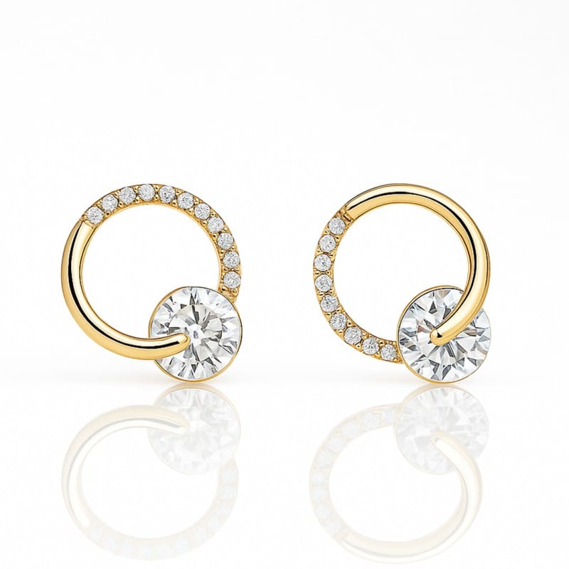 Kolczyki ze stali szlachetnej pozłacane 14k złotem, cyrkonie, kółka sztyft KST3471