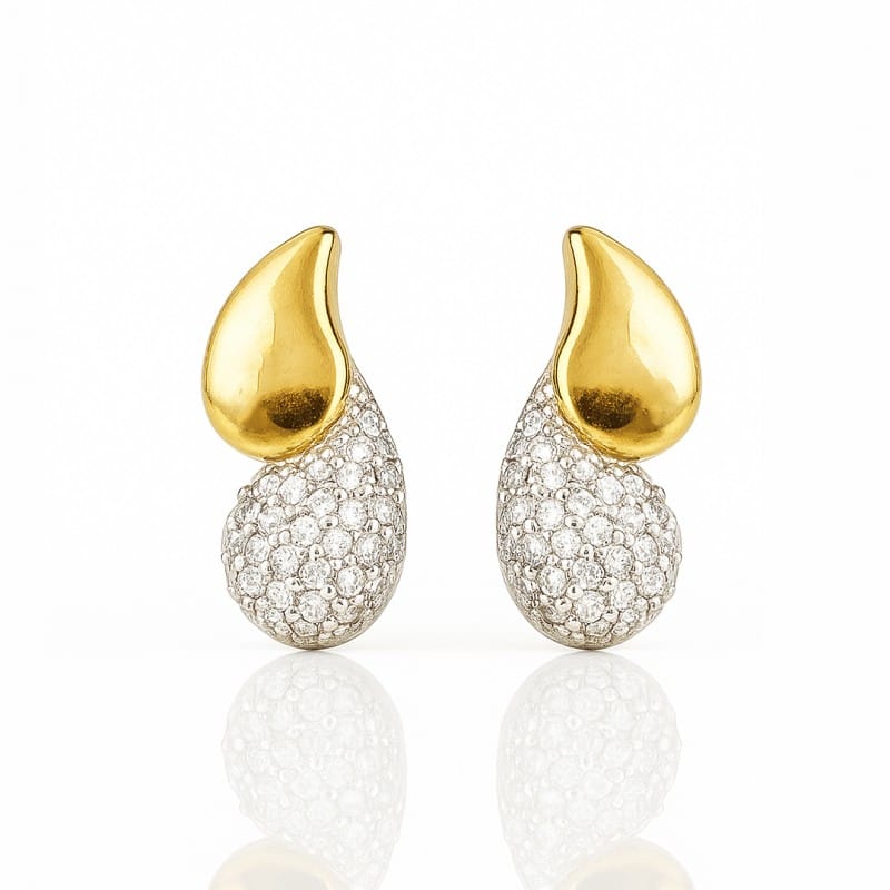 Kolczyki ze stali szlachetnej pozłacane 14k złotem, cyrkonie łezki KST3447