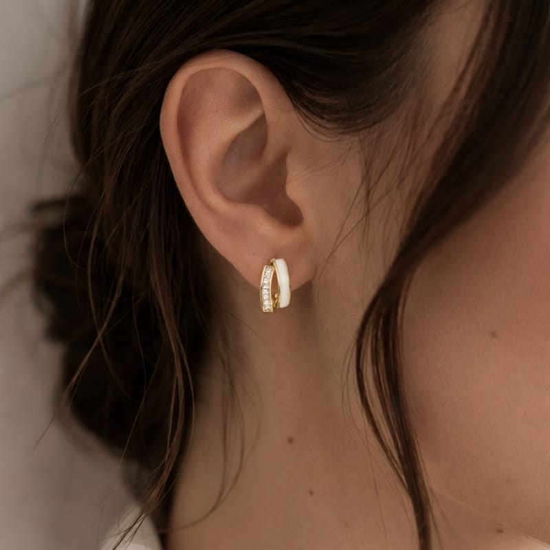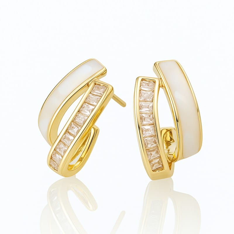 Kolczyki ze stali szlachetnej pozłacane 14k złotem, cyrkonie masa perłowa KST3514