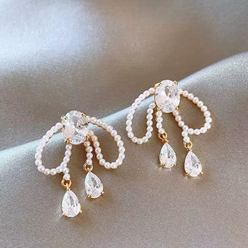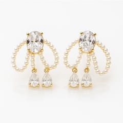 Kolczyki ze stali szlachetnej pozłacane 14k złotem, cyrkonie perły KST3474