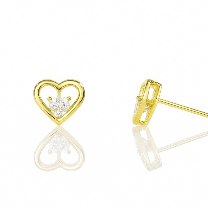 Kolczyki ze stali szlachetnej pozłacane 14k złotem, cyrkonie serca KST3487