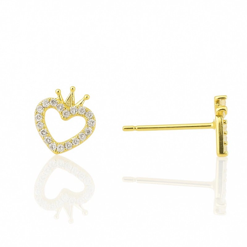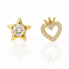 Kolczyki ze stali szlachetnej pozłacane 14k złotem, cyrkonie serce, gwiazdka KST3493