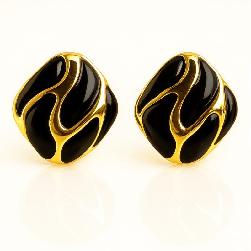 Kolczyki ze stali szlachetnej pozłacane 14k złotem, dekoracyjne czarne KST3479CZ