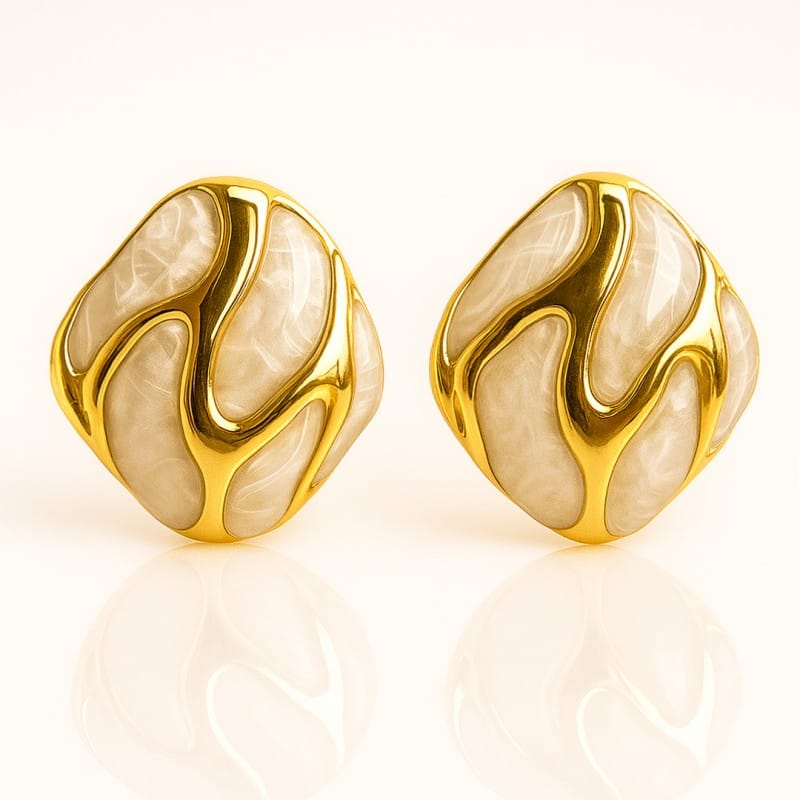 Kolczyki ze stali szlachetnej pozłacane 14k złotem, dekoracyjne ecru KST3479B