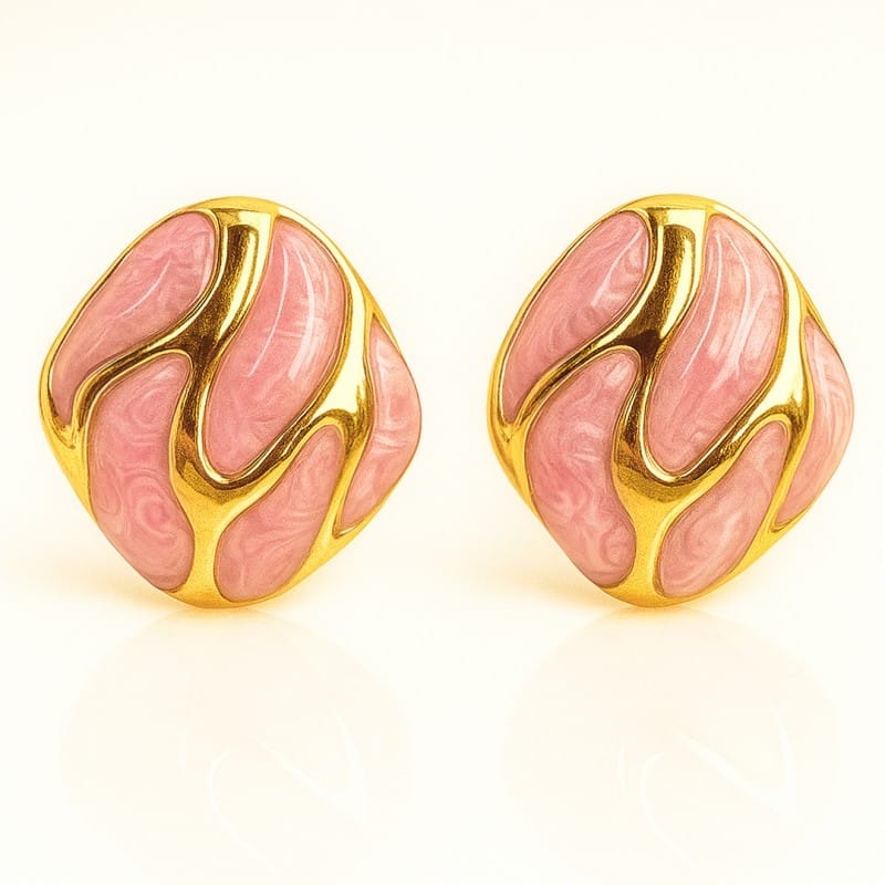 Kolczyki ze stali szlachetnej pozłacane 14k złotem, dekoracyjne róż KST3479R
