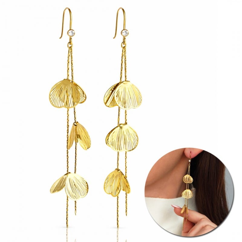 Kolczyki ze stali szlachetnej pozłacane 14k złotem, efektowne, wiszące kwiaty KST3506