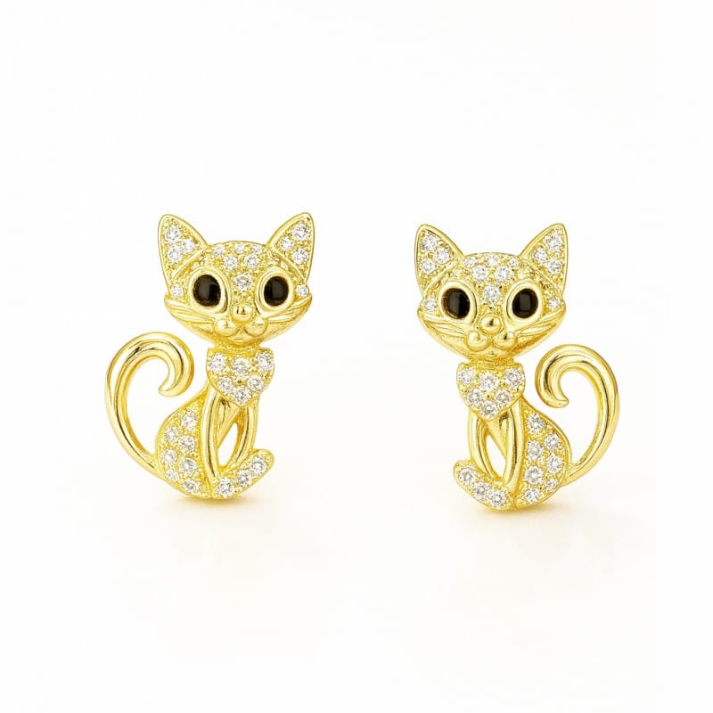 Kolczyki ze stali szlachetnej pozłacane 14k złotem, Kot KST3524
