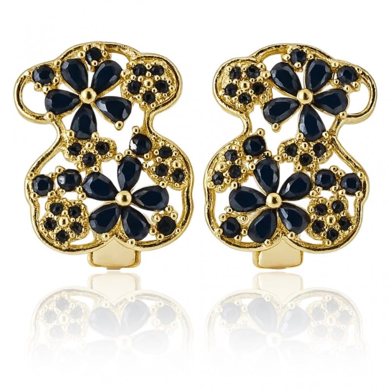 Kolczyki ze stali szlachetnej pozłacane 14k złotem, miś z czarną cyrkonią KST3535