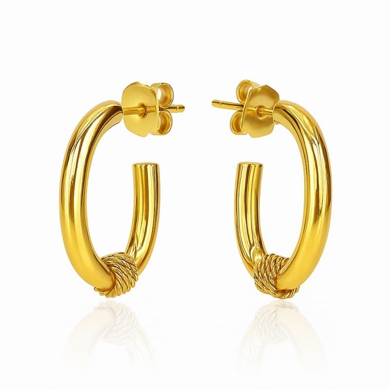 Kolczyki damskie ze stali szlachetnejEleganckie i stylowe kolczyki. Wymiary kolczyków:3cm x 1,8cm x 0,4 cm Wymiary kartonika:5,5cm x 6cm Waga: 9g netto / 12g brutto Kolor: jasne złotoRodzaj zapięcia: kreolProducent: inny STAL CHIRURGICZNA jest odporna na warunki atmosferyczne, nie ulega korozji, nie rdzewieje, nie śniedzieje.
