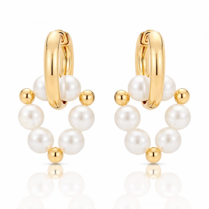 Kolczyki ze stali szlachetnej pozłacane 14k złotem, okręgi perełkowe 3,5 cm KST3576