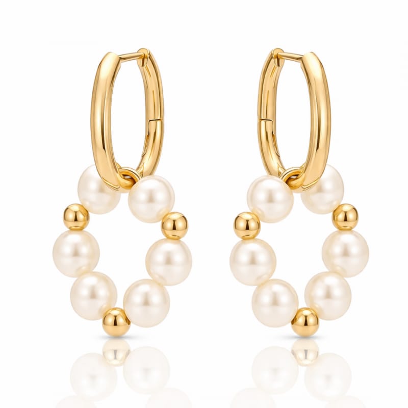 Kolczyki ze stali szlachetnej pozłacane 14k złotem, okręgi perełkowe 4 cm KST3575