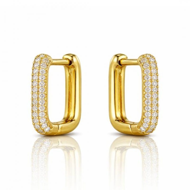 Kolczyki ze stali szlachetnej platerowane 14-karatowym złotemEleganckie i stylowe kolczyki. Wymiar kolczyków: Wymiar kartonika:5,5 cm x 6 cm Waga:netto / brutto Rodzaj zapięcia: angielskie Stal szlachetna jest odporna na warunki atmosferyczne, nie ulega korozji, nie rdzewieje, nie śniedzieje.