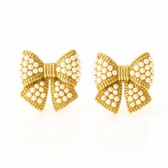 Kolczyki ze stali szlachetnej pozłacane 14k złotem, perełkowe Kokardki KST3511