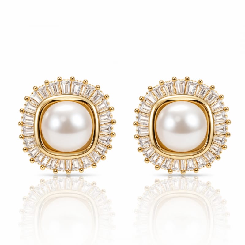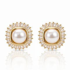 Kolczyki ze stali szlachetnej pozłacane 14k złotem, perły, cyrkonie KST3549