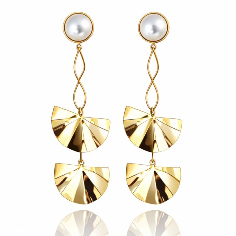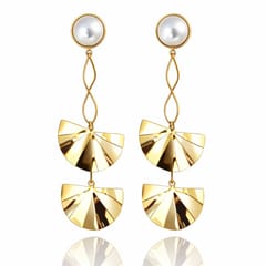 Kolczyki ze stali szlachetnej pozłacane 14k złotem, perły, efektowne, wiszące blaszki KST3505