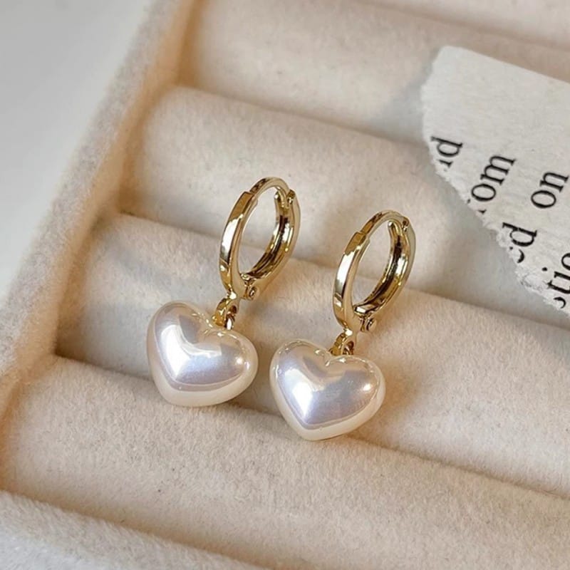 Kolczyki ze stali szlachetnej pozłacane 14k złotem, perły serca KST3475