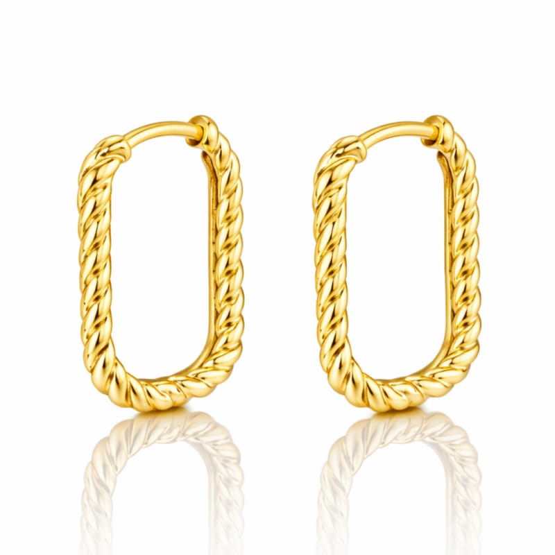 Kolczyki ze stali szlachetnej platerowane 14-karatowym złotemEleganckie i stylowe kolczyki. Wymiar kolczyków:1,9cm x 0,2cm x 1cm Wymiar kartonika:5,5 cm x 6 cm Waga:2g netto / 4g brutto Rodzaj zapięcia: angielskie Stal szlachetna jest odporna na warunki atmosferyczne, nie ulega korozji, nie rdzewieje, nie śniedzieje.