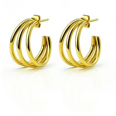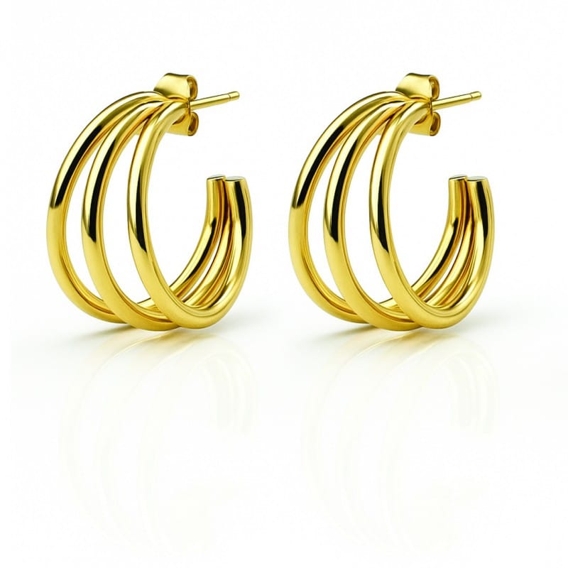 Kolczyki ze stali szlachetnej pozłacane 14k złotem, potrójne koła KST3457