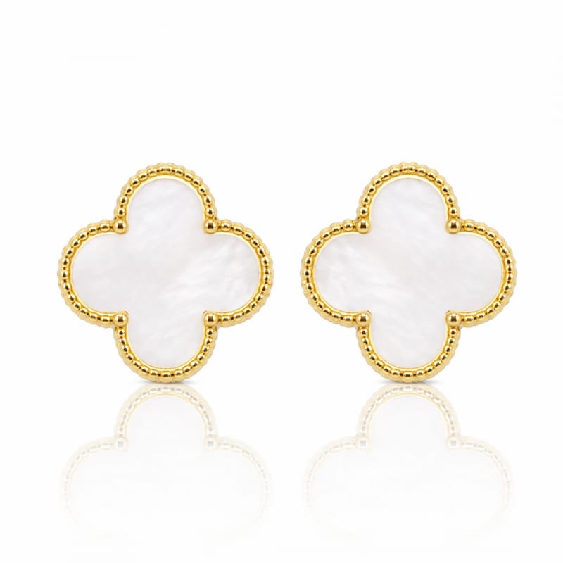 Kolczyki ze stali szlachetnej pozłacane 14k złotem, sztyft, Białe Koniczynki KST3582