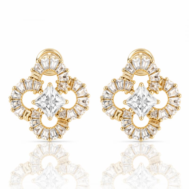 Kolczyki ze stali szlachetnej pozłacane 14k złotem, sztyft, Cyrkonie, Koniczyna KST3540