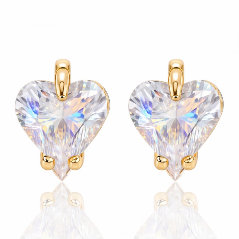 Kolczyki ze stali szlachetnej pozłacane 14k złotem, sztyft, Kryształowe SERCA KST3545