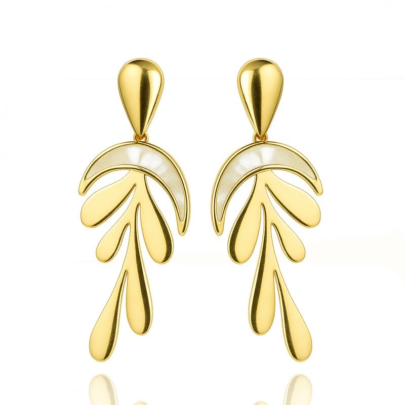 Kolczyki damskie ze stali szlachetnejEleganckie i stylowe kolczyki. Wymiary kolczyków:6,2x 2,6, cm Wymiary kartonika:5,5cm x 6cm Waga: 12 g netto / 14g brutto Kolor: jasne złotoRodzaj zapięcia: sztyftProducent: inny STAL CHIRURGICZNA jest odporna na warunki atmosferyczne, nie ulega korozji, nie rdzewieje, nie śniedzieje.