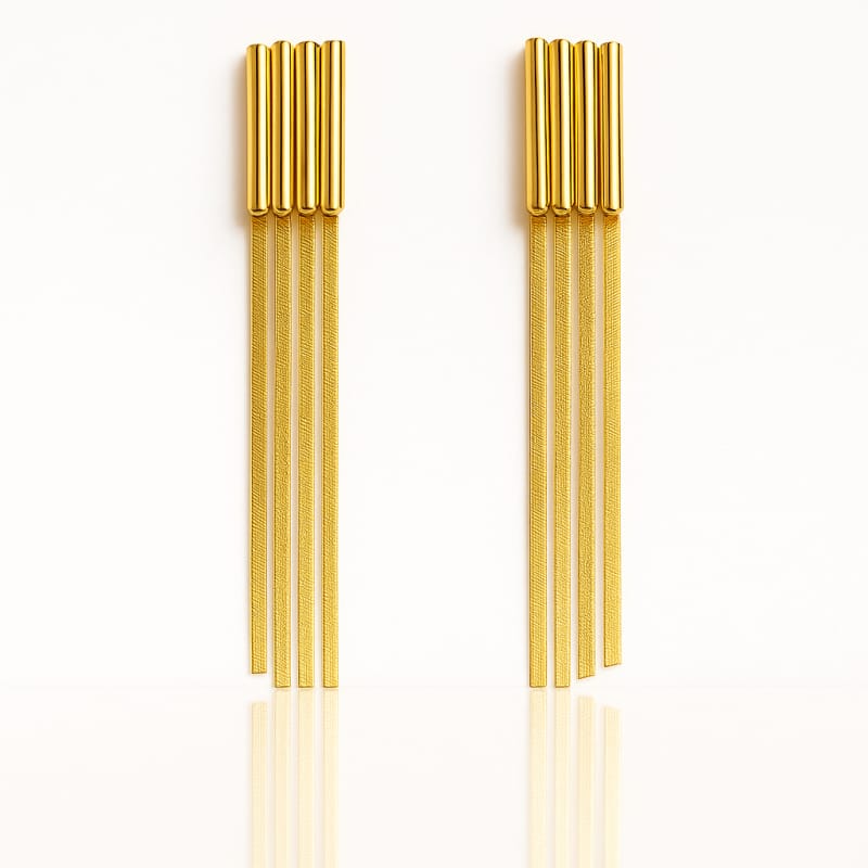 Kolczyki damskie ze stali szlachetnejEleganckie i stylowe kolczyki. Wymiary kolczyków:8cm x 1 cm Wymiary kartonika:8,5cm x 7cm Waga: 7g netto /9g brutto Kolor: jasne złotoRodzaj zapięcia: sztyftProducent: inny STAL CHIRURGICZNA jest odporna na warunki atmosferyczne, nie ulega korozji, nie rdzewieje, nie śniedzieje.