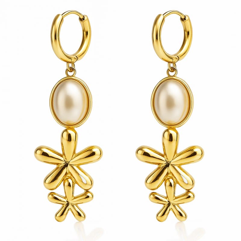 Kolczyki damskie ze stali szlachetnejEleganckie i stylowe kolczyki. Wymiary kolczyków:6,5 x 2 cm Wymiary kartonika:5,5cm x 6cm Waga: 9g netto / 12g brutto Kolor: jasne złotoRodzaj zapięcia: sztyftProducent: inny STAL CHIRURGICZNA jest odporna na warunki atmosferyczne, nie ulega korozji, nie rdzewieje, nie śniedzieje.