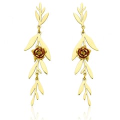 Kolczyki ze stali szlachetnej pozłacane 14k złotem, wiszące kwiaty KST3441