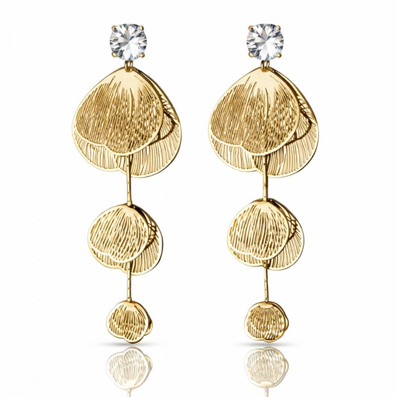 Kolczyki damskie ze stali szlachetnejEleganckie i stylowe kolczyki. Wymiary kolczyków:7,5cm x 2,8cm x 0,6cmWymiary kartonika:5,5cm x 6cm Waga: 8g netto / 10g brutto Kolor: jasne złotoRodzaj zapięcia: sztyftProducent: inny STAL CHIRURGICZNA jest odporna na warunki atmosferyczne, nie ulega korozji, nie rdzewieje, nie śniedzieje.