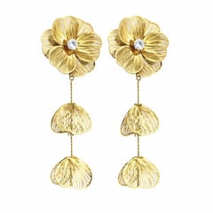 Kolczyki ze stali szlachetnej pozłacane 14k złotem, wiszące kwiaty z cyrkoniami KST3527