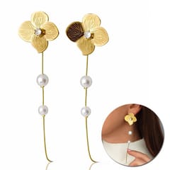 Kolczyki ze stali szlachetnej pozłacane 14k złotem, wiszące kwiaty z perełkami KST3508