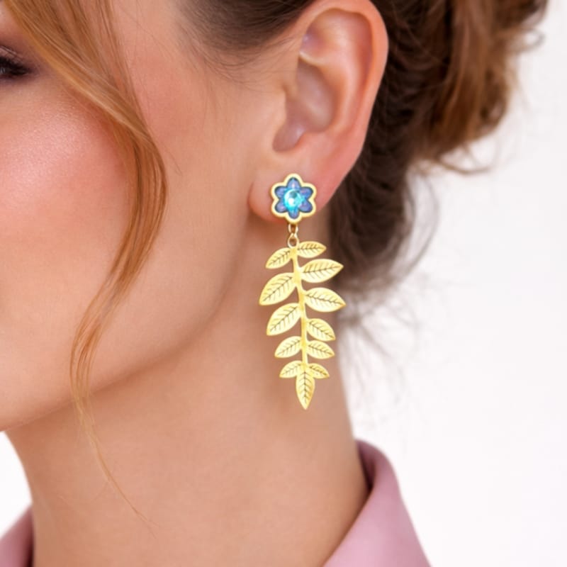 Kolczyki ze stali szlachetnej pozłacane 14k złotem, wiszące liście kwiat KST3450