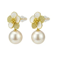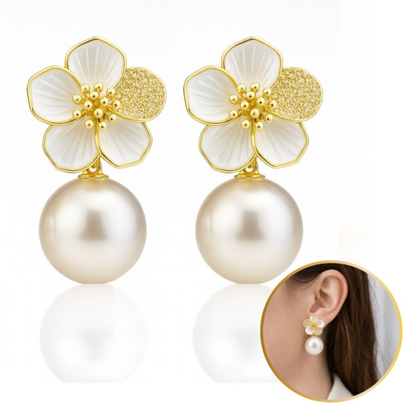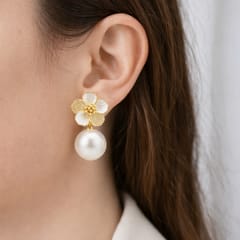 Kolczyki ze stali szlachetnej pozłacane 14k złotem, wiszące Perły z Kwiatem KST3513
