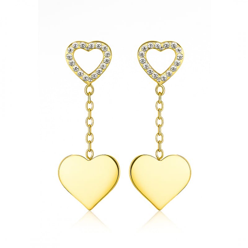 Kolczyki ze stali szlachetnej pozłacane 14k złotem, wiszące Serca KST3460