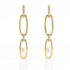 Kolczyki ze stali szlachetnej pozłacane 14k złotem, wiszące z Perłą KST3522