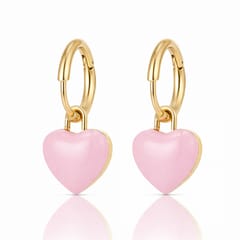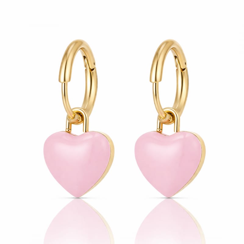 Kolczyki ze stali szlachetnej pozłacane 14k złotem, zapięcie angielski, Różowe SERCA KST3564